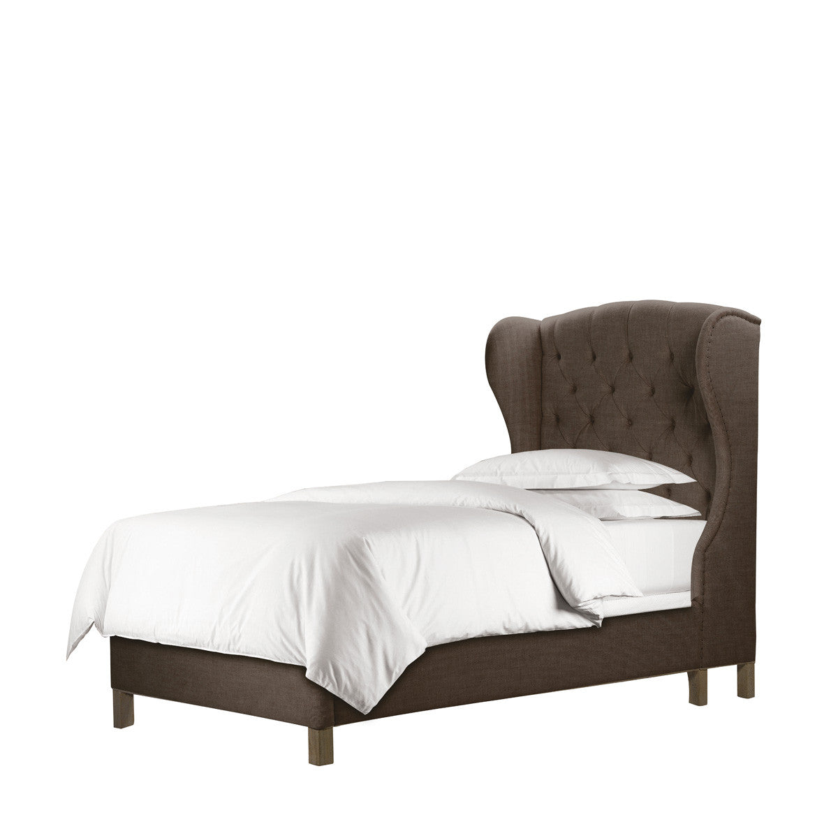 Роскошная кровать с высоким мягким изголовьем, созданная по мотивам классического французского кресла 19 века. Простеганная обивка изголовья выполнена из натурального бельгийского льна. Ножки изготовлены из ясеня. Также кровать оснащена опорой для матраса.