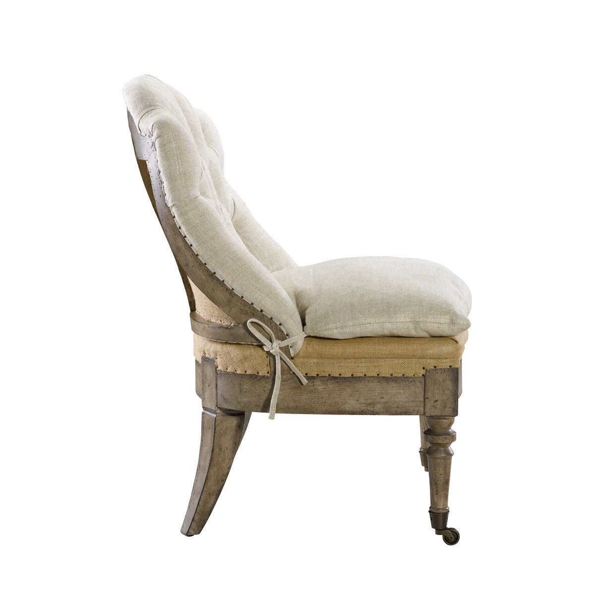 Availability: Out of StockЭко кресло в стиле деконструктивизма с открытыми конструкциями. Выполнено в обивке из натурального бельгийского льна, рогожки, вручную обработанной декоративными гвоздями из состаренной латуни.Наполнение координационной спинки и подушек: 50% пух + перо и 50% полифайбер, обернуты вокруг полиформа со степенью жесткости 4,5. Рама и изящные ножки выполнены из массива патинированного дуба. Оснащено двумя металлическими колесиками.