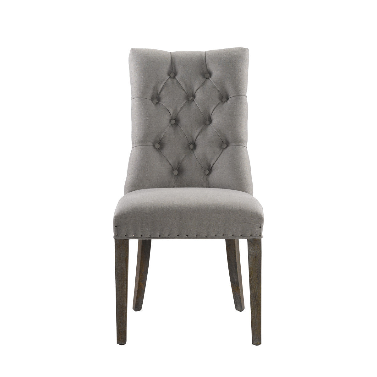 Простеганный стул из натурального бельгийского льна вручную отделан декоративными латунными гвоздями. Ножки изготовлены из патинированного ясеня. Упакованы в коробке по 2 шт.
