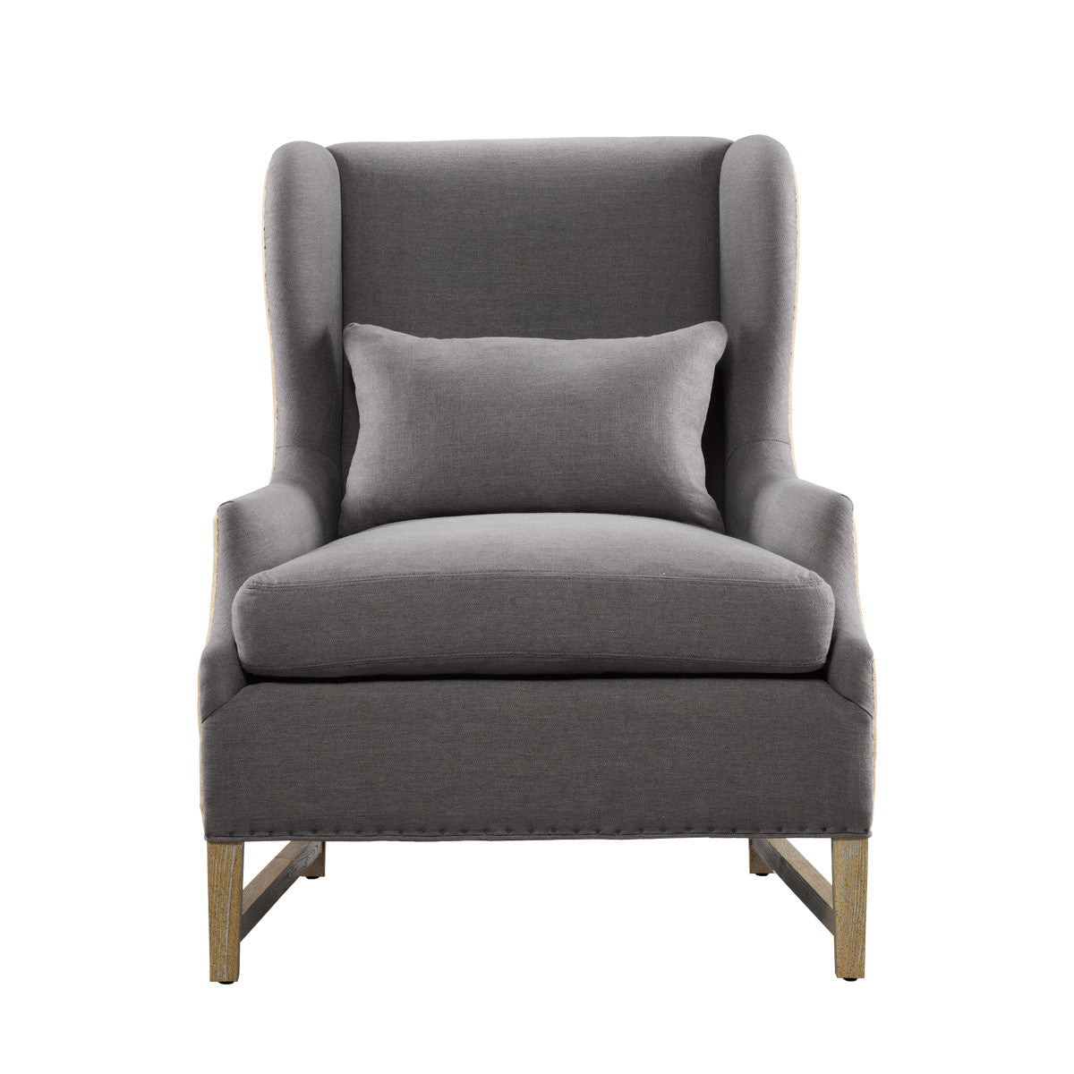 Кресло из бельгийского хлопка. Обивка вручную обработана по краю вбитыми гвоздями из латуни. Продается с одной льняной подушкой размером 33 х 58,5 см. Наполнитель – пух и перо.Восьми-направленная пружинная подвеска ручной скрутки. Координационная спинка и подушки наполнены 50% пух -перо и 50% полифайбера, обернутые вокруг полиформа толщиной 11,5 см .Деревянная рама - основа из ясеня.